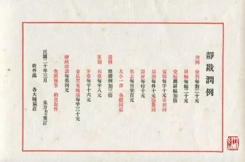 《静戡润例》朱复戡32岁自定润例(民国二十年三月)
