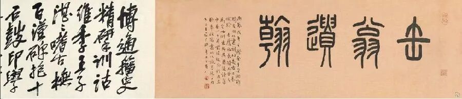 博通籀史,精研训诂,维系王子,湛湛嗜古。抚百汉碑,抱十石鼓,印学流传,家珍自数。赵(悲庵)茹我吐,吴(让之)阙吾补。比客天涯,强自取柱。为订润格,到门不(度文)匪云标榜,聊慰习苦。