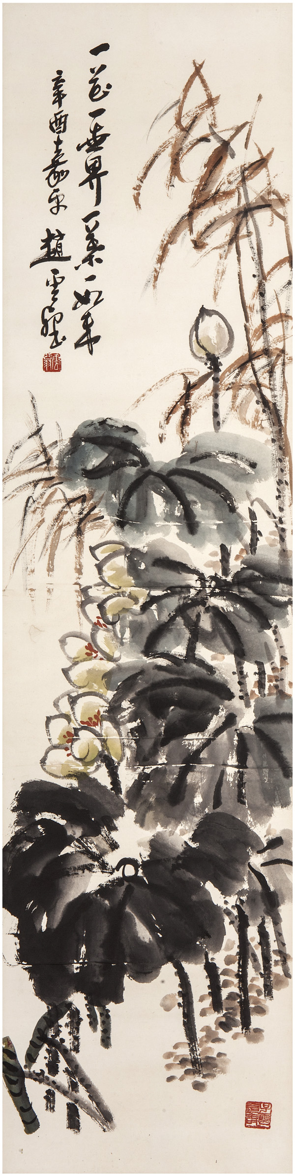 | ●赵云壑 (1874-1955),初名龙,改名起,字子云,别署云壑、壑山樵子、泉梅村人、秃尊者。斋名云起楼、还读楼。另有春晖草堂、思寒斋、无休庵。初从苏州施药局精善花鸟之医生蒋先农学画,後又从秦子卿、李农如、任立凡诸画师习绘事。年三十得诗人顾茶邨之介,拜吴昌硕为师。弟子甚多,若郑曼陀、谢之光、黄昌中等,皆其著者。 |