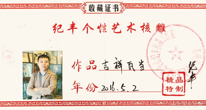 | ●浦纪丰,1978年生于苏州,中国核雕艺术研究会常务理事、山东青岛核雕协会副会长、苏州市核雕协会常务理事。 |