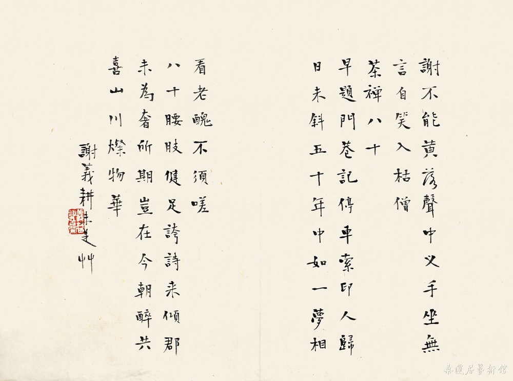 | ●谢义耕(1911-1986),原名荔生,号二无,福州市水部龙庭境人。曾当过中药铺学徒、国民党荔生省政府助理秘书。中华人民共和国成立后,在福建省人委办公厅参事室工作。福州市画院画师、福州市书法篆刻研究会理事、福建省文史研究馆馆员。 |