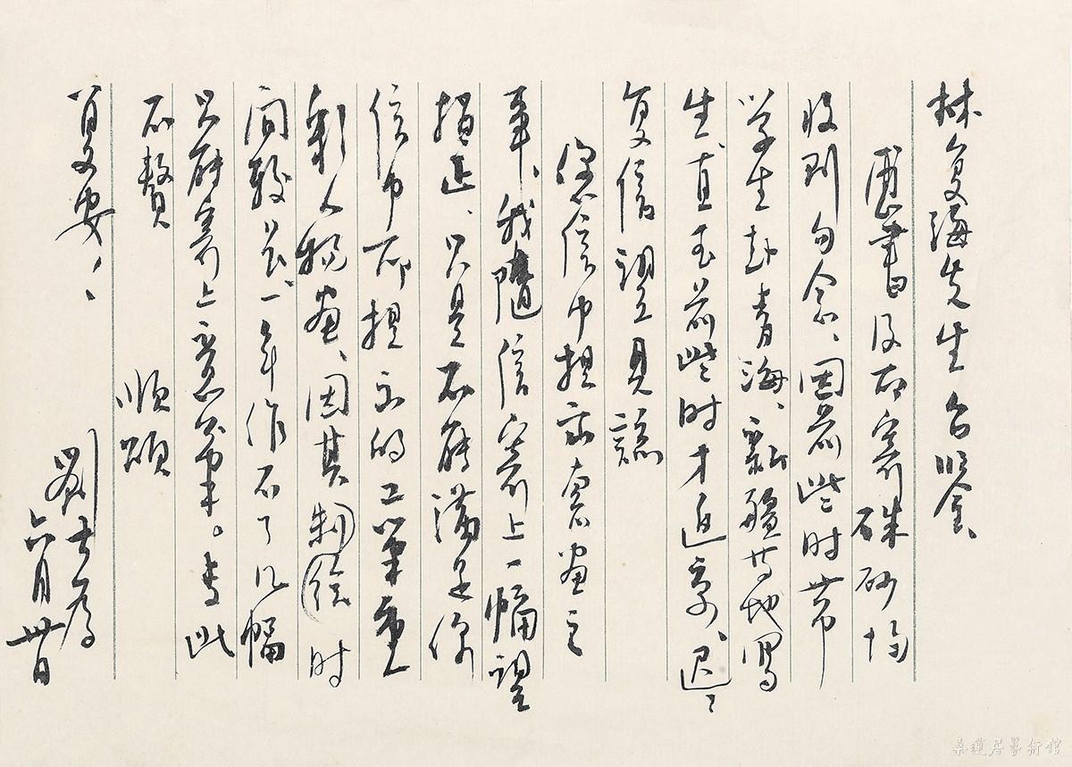 | 说明:附刘大为签名名信片四通 ●刘大为(b.1945-),祖籍山东诸城。1968年毕业于内蒙古师范大学美术系。1980年毕业于中央美术学院中国画系研究生班。现任解放军艺术学院美术系教授、主任,中国文联副主席、中国美术家协会主席、教科文组织下属国际造型艺术家协会主席、全国政协委员。 ●陈大羽(1912-2001),著名写意花鸟画家。原名汉卿,其师齐白石为之改为陈翱,取字大羽。广东潮阳人。1935年毕业于上海美术专业学校中国画系,曾在潮洲、青岛等地任教。1946年拜齐白石为师,致力于大写意花鸟画的创作,兼及山水、书法、篆刻。长期担任中国画教学工作。历任中国书法家协会常务理事,中国美术家协会会员,江苏省书法家协会、美术家协会副主席。出版有《陈大羽画集》、《陈大羽书画篆刻作品集》等。 ●郑乃珖(1911-2005),号璧寿翁,福州市人。生前为福州画院终身名誉院长,国家一级美术师、文化部中国画研究院院务委员、中国工笔画学会顾问、福建省政协五、六、七届常委、福建省文史研究馆副馆长、福州市文联名誉主席、西安美术学院教授。精花卉、翎毛、走兽、蔬果、时鲜、亦工山水、人物。在意境、取材、构图、造型、用线、敷彩以及题款、钤章诸方面均大大突破前人藩篱,对当代中国绘画继承、发展作出突出的贡献,是当代中国画坛重要代表人物之一,也是一名德高望重的艺术教育家。 |